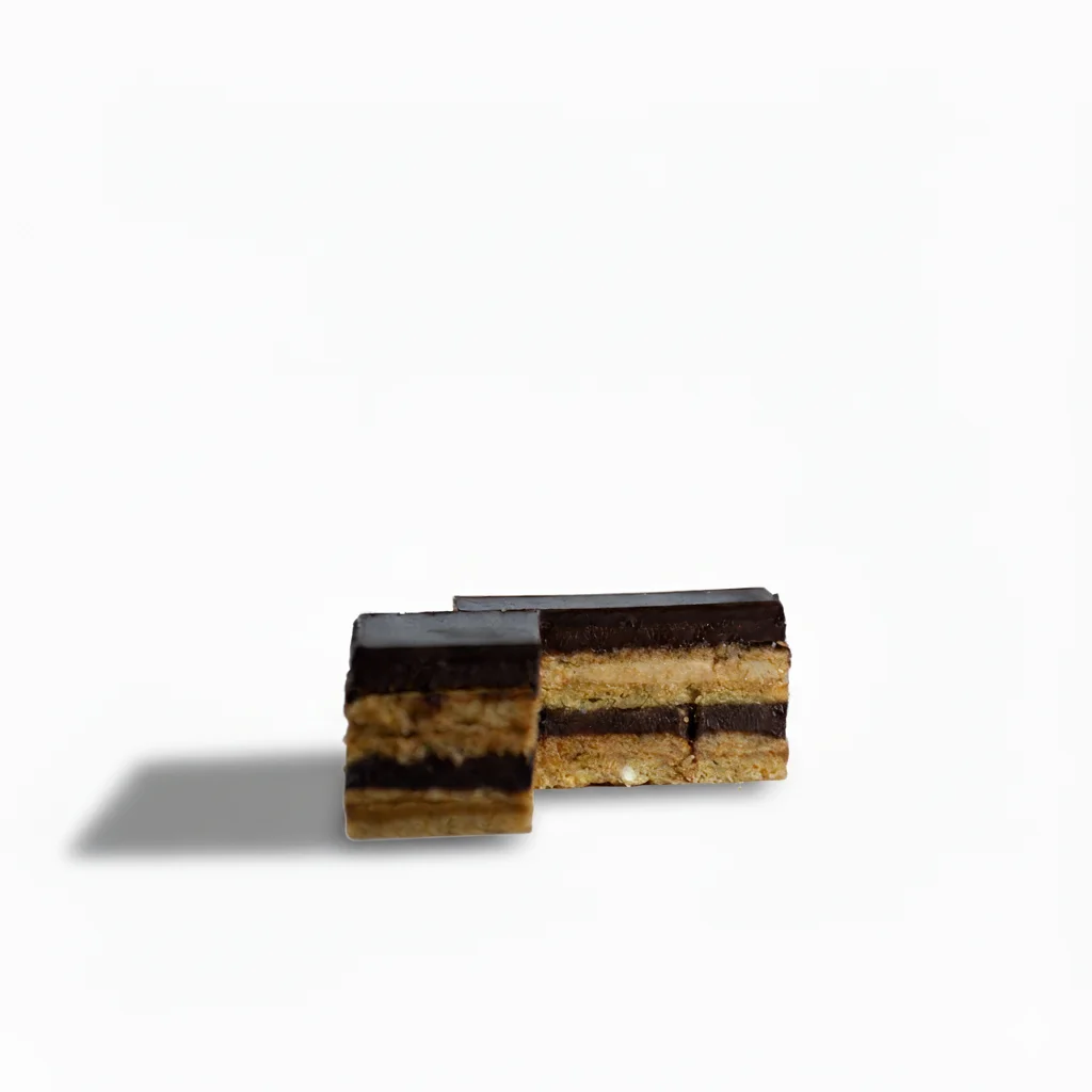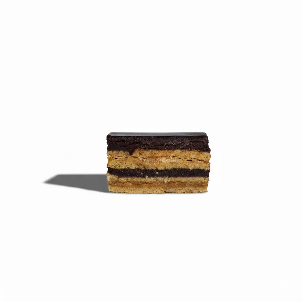 یک دسر فرانسوی لایهای که ترکیبی از طعمهای غنی و بافتهای لطیف را در هر برش ارائه میدهد. این شیرینی ظریف شامل کیک ژکوند نرم و مرطوب، موس قهوه خامهای، کرم کره لطیف و شکلات تلخ با عطر و طعم بینظیر است.