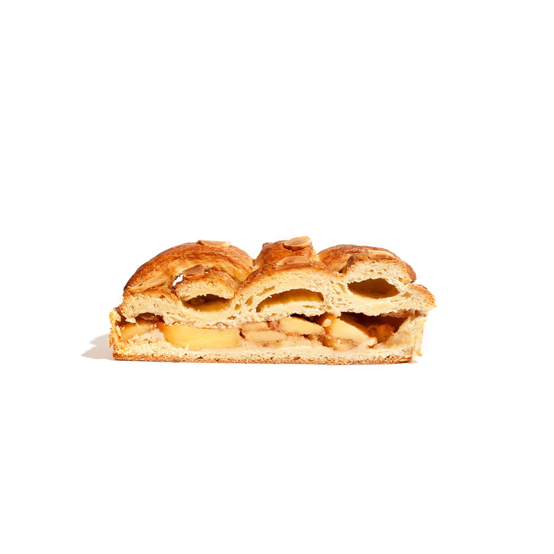 | ترکیبات | خمیرترش ، بافت لایهای ، سیب کاراملیزه ، دارچین ، با تزئین پودر قند و پرک بادام |