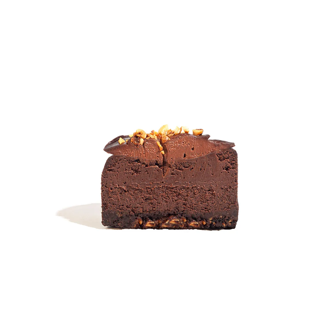 ترکیبی از لطافت، عمق طعم و مزهای فراموشنشدنی. چیزکیک شکلاتی تنوری گنتوم با پایهای از بیسکوییت کرهای ترد، لایهای خامهای از پنیر و شکلات تلخ و تکههای فندق برشته درون بافت، طعمی عمیق و دلپذیر را خلق میکند. تاپینگ این دسر با پرالین فندق پوشانده شده که طعمی کاراملی و آجیلی را به هر لقمه میافزاید.